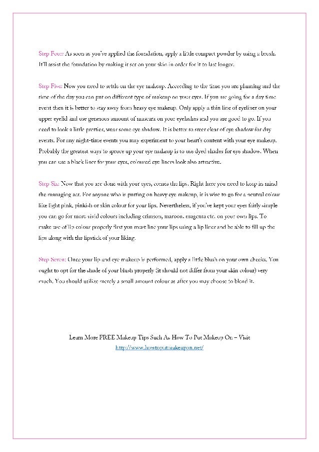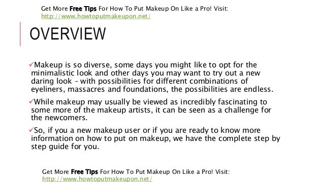 Popularized by celebrity makeup artists, but with the right How To Put On Makeup Like A Pro 10 Easy Makeup Steps. The pros know how to put on makeup quickly and achieve beautiful results.Their methods may seem a little unconventional to you. In fact, you might be surprised how makeup artists really apply cosmetics. ... Retrieve Here